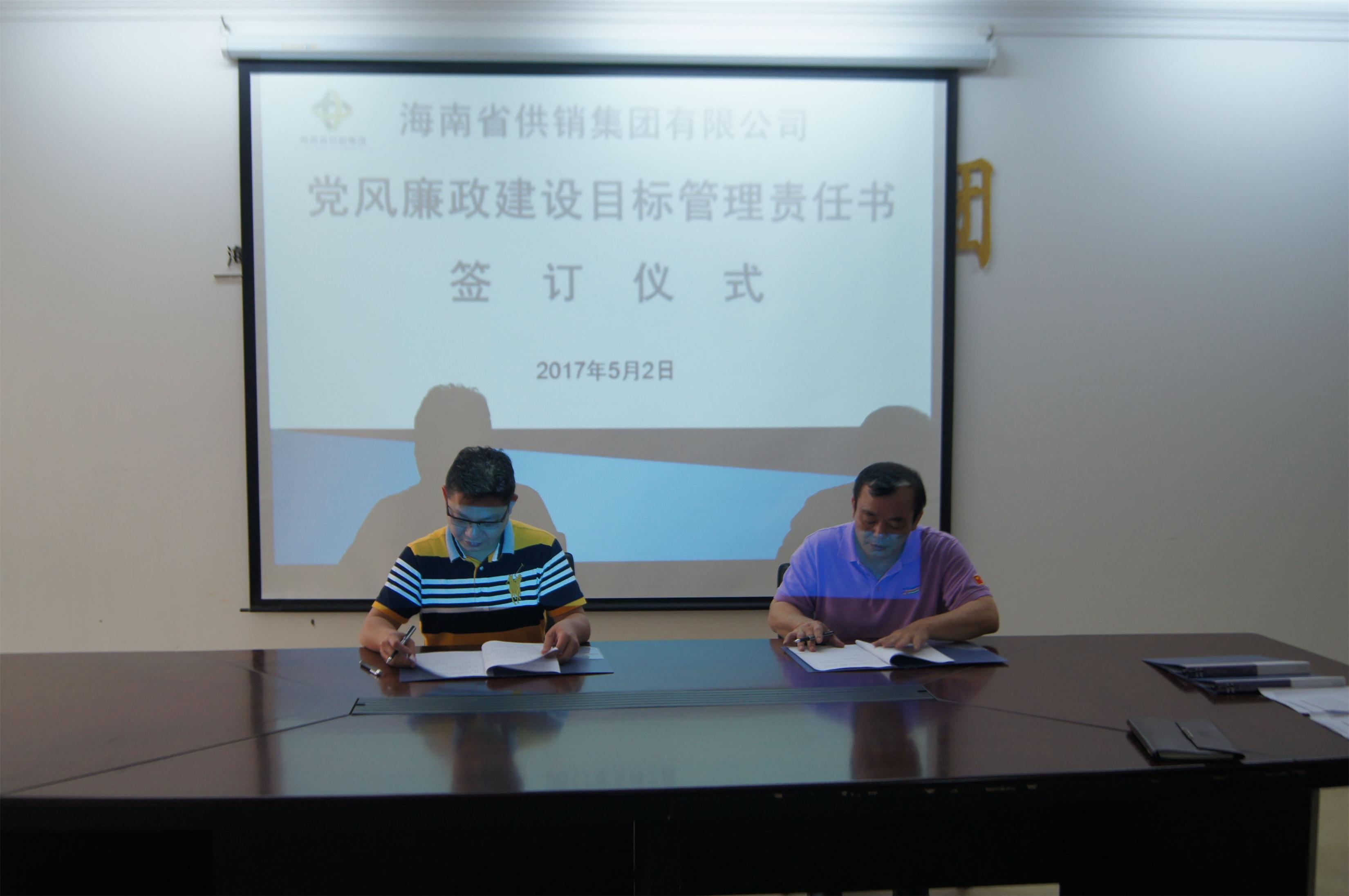 ☉加強黨風(fēng)廉政建設(shè) 強化落實“一崗雙責(zé)” 為貫徹落實中共中央《關(guān)于實行黨風(fēng)廉政建設(shè)責(zé)任制的規(guī)定》和省社黨委2017年黨風(fēng)廉政工作的要求,2017年5月2日下午,海南省供銷集團有限公司在公司會議室舉行了2017年黨風(fēng)廉政建設(shè)目標(biāo)管理責(zé)任書簽約儀式。海南省供銷集團有限公司總經(jīng)理余漢忠分別與分管領(lǐng)導(dǎo) 日期:2017.05.04 點擊:304