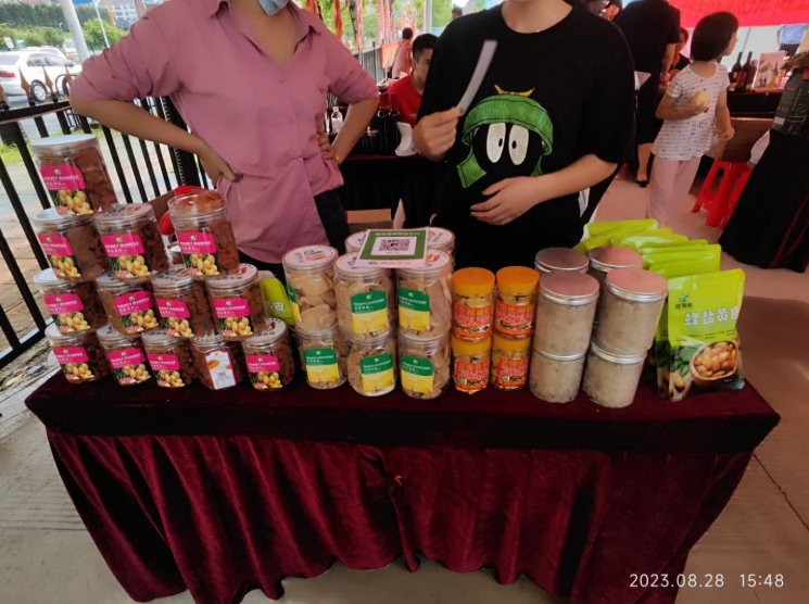 此次活動“消費(fèi)助農(nóng)”活動現(xiàn)場,各色產(chǎn)品琳瑯滿目,現(xiàn)場有時令蔬菜、東坡紅米、土雞、自制的花生油、野生蜂蜜、椰子水、本地特色的中秋節(jié)月餅等。各具特色農(nóng)產(chǎn)品擺滿了展銷攤位,令人目不暇接,吸引不少干部職工、游客、居民前來購買,大家根據(jù)自身需求在攤位前挑選自己心儀的產(chǎn)品。