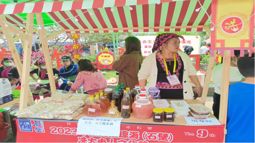活動(dòng)現(xiàn)場(chǎng)共設(shè)立40個(gè)銷售展位,當(dāng)天,建檔立卡脫貧戶、合作社、帶貧企業(yè)攜帶多種特色農(nóng)副產(chǎn)品前來(lái)展銷售賣,琳瑯滿目的石壁特色美食,如五色糯米飯、山蘭糯米酒、野豬肉粽、斑斕雜糧,富含藥用價(jià)值的牛大力、野生蜂蜜以及新鮮的瓜果蔬菜整齊有序的擺在攤位上,吸引廣大市民和周邊村民駐足觀看。部分?jǐn)偽皇圬泦T穿著統(tǒng)一民族服飾,在買賣過程中還不忘向消費(fèi)居民講解當(dāng)?shù)匚幕?xí)俗,場(chǎng)面非常熱鬧。