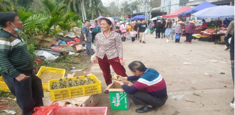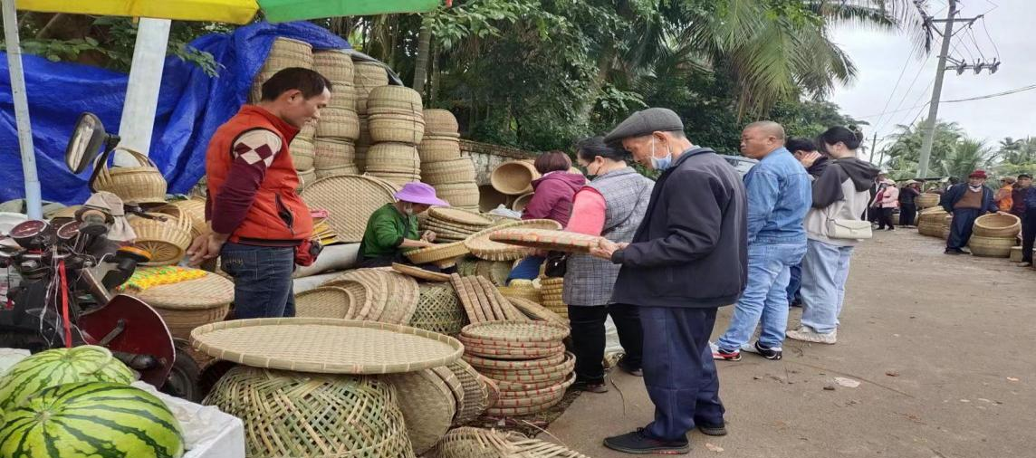 活動當天集市上人頭攢動、吆喝聲此起彼伏,十分熱鬧。有新鮮便宜的蔬菜、山藥、玉米、生姜,村民自家養(yǎng)殖的家禽,新鮮的牛肉、羊肉,還有純天然的蜂蜜,村民自己手工制作的竹筐、簸箕,現(xiàn)摘的椰子等農產品,現(xiàn)場農產品銷售的種類和數(shù)量繁多,場面十分火爆,部分農產品甚至在一擺上攤位時就被一掃而空,能很好滿足群眾的購買需求。