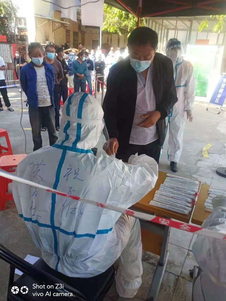 “請(qǐng)?zhí)崆按蜷_健康碼,前后保持一米以上距離”“這是你的棉簽請(qǐng)拿好按序號(hào)排隊(duì)”“黃碼人員請(qǐng)到指定點(diǎn)位做檢測(cè)”……黨員志愿者們已然成為防疫工作的行家里手,轉(zhuǎn)變?yōu)榭删纯蓯鄣摹按蟀住薄?/span>