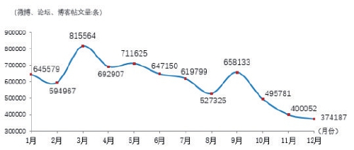 2021年三農(nóng)網(wǎng)絡(luò)帖文量月度走勢(shì)