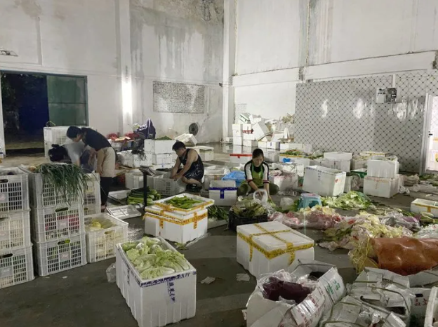 10月9日凌晨2點30分,海南蕓鑫公司當(dāng)晚第2輛蔬菜調(diào)運車輛抵達分揀中心。據(jù)現(xiàn)場了解,該公司運營的公益性農(nóng)產(chǎn)品交易中心已儲備6噸蔬菜,儲備蔬菜品種38種,基本滿足農(nóng)貿(mào)市場2天的供貨需求。