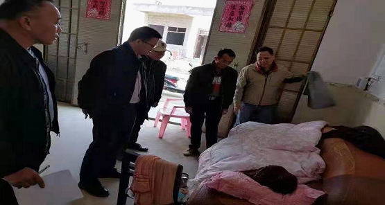 來到貧困戶黃祥川家,其年邁的母親因寒冷臥床,向黃祥川詢問了老人的身體狀況,并叮囑其注意防寒,照顧好老人,還給其發(fā)放救濟物資棉被,并為老人蓋上棉被保暖。