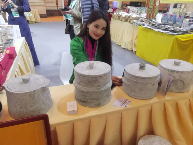 融洽的合作氛圍感染著每一個(gè)人。西藏自治區(qū)供銷(xiāo)合作社是首次參加“冬交會(huì)”。身著藏族服飾的墨脫縣幫辛鄉(xiāng)西登村石鍋加工銷(xiāo)售專(zhuān)業(yè)合作社負(fù)責(zé)人曲珍帶來(lái)了西藏墨脫石鍋。墨脫石鍋手工制作工藝被評(píng)為西藏非物質(zhì)文化遺產(chǎn),有著悠久的歷史,也是展會(huì)上最引人注目的產(chǎn)品?!拔覀兊氖佊珊献魃绱迕裼锰烊辉硎止ぶ瞥?,墨脫是全國(guó)最后一個(gè)通路的縣,很多人在了解墨脫石鍋后,表示要到墨脫去旅游,我覺(jué)得這是對(duì)家鄉(xiāng)很好的一次宣傳!”曲珍激動(dòng)地說(shuō)。西藏的牦牛肉、藥材等也吸引了不少顧客前來(lái)詢問(wèn)。“我們帶來(lái)了13家企業(yè)參加冬交會(huì),在展位搭建、產(chǎn)品布局、選品等方面還要多多加強(qiáng),很多人對(duì)西藏還不十分了解,也希望借助這次展會(huì)更好地宣傳西藏。”西藏區(qū)社負(fù)責(zé)人這樣告訴記者。