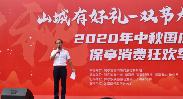山城有好禮-雙節(jié)大放‘價(jià)’,9月28日,保亭縣在麗都莊園扶貧集市現(xiàn)場啟動(dòng)2020年中秋國慶節(jié)消費(fèi)狂歡季活動(dòng),掀起第二場“消費(fèi)扶貧月 愛心扶貧大集市”熱潮。
