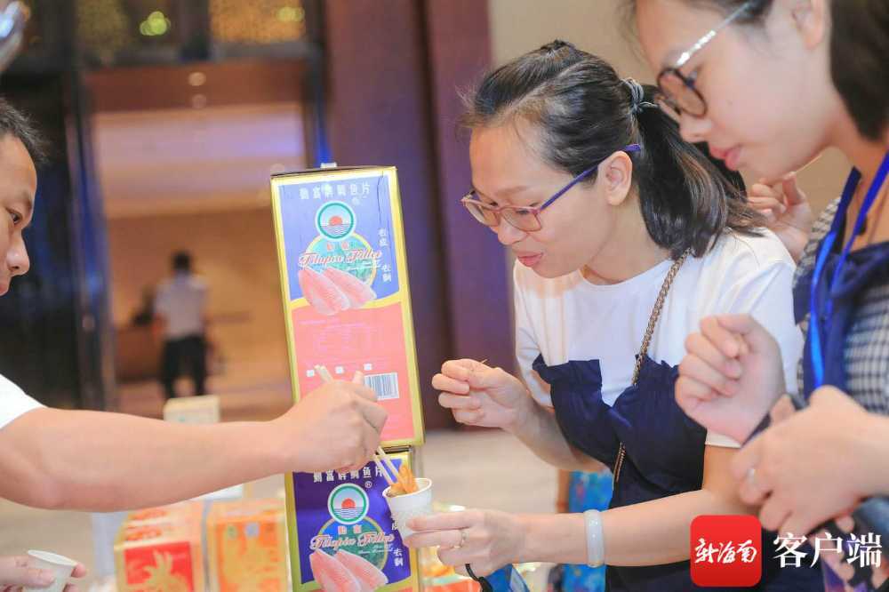 當天,勤富食品展臺上帶來了魚皮和鯛魚片的試吃,工作人員把廚具帶到展臺,現(xiàn)場煎魚片,香味四溢,吸引了眾多嘉賓的駐足?!棒~片好嫩,怎么賣的?”“這魚皮爽滑脆彈,真的太好吃了,給我來一包!”工作人員一邊忙著給顧客打包,一邊引導顧客掃碼付款,生意好不熱鬧。