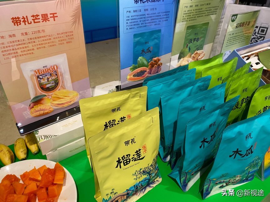 展示了來自三亞市各區(qū)(育才生態(tài)區(qū))扶貧農(nóng)產(chǎn)品及特色產(chǎn)品共計40多種,其中,芒果、蓮霧、百香果、木瓜、米蕉、火龍果等本地?zé)釒仁侨齺啽镜刂鞔蛩?,也是三亞?dāng)?shù)胤鲐殤羰杖胫饕杖肭?;還有來自育才生態(tài)區(qū)10個貧困村的綠殼雞蛋、竹筍、熊角林芝、松茸,少數(shù)民族特色的山蘭米、山蘭酒、苦瓜干、蜂蜜等土特產(chǎn)品,以及椰子油、芒果干、黎錦等文創(chuàng)扶貧產(chǎn)品,體現(xiàn)出“有溫度的產(chǎn)品、有文化的包裝、有目的的營銷、可帶走的回憶”產(chǎn)業(yè)扶貧路子。