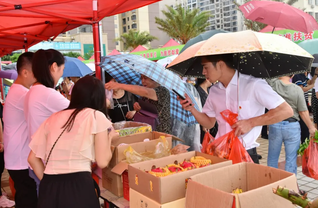 9月10日,一場充滿愛心的活動如期在文昌市舉行。下午4點半,“消費扶貧•你我同行”2020年文昌市“消費扶貧月”愛心扶貧大集市活動在文城鎮(zhèn)夜市美食街熱鬧開市。千余名市民冒雨購買農(nóng)副產(chǎn)品,助力扶貧。短短2個小時銷售額達14萬多元。