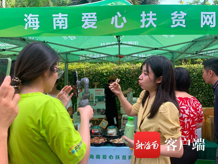 海南愛心扶貧大集市設(shè)置專門的攤點,推介全生物降解塑料制品。陳奕衡 攝