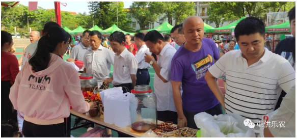 上午9點(diǎn)舉行開(kāi)幕儀式,縣政協(xié)吳云師副主席、南坤鎮(zhèn)黨委書記王剛、縣供銷合作聯(lián)社主任符文雄、南坤鎮(zhèn)政府鎮(zhèn)長(zhǎng)洪雄出席開(kāi)幕儀式,南坤鎮(zhèn)黨委書記王剛作致辭講話。通過(guò)“以購(gòu)代捐”“以買代幫”等方式促進(jìn)全鎮(zhèn)扶貧農(nóng)產(chǎn)品銷售。中共屯昌縣委常委、縣人民武裝部政委黎兆興、縣政協(xié)吳云師副主席等縣領(lǐng)導(dǎo)親臨活動(dòng)現(xiàn)場(chǎng)帶頭購(gòu)買貧困戶農(nóng)產(chǎn)品,南坤鎮(zhèn)政府干部職工、雙聯(lián)雙扶單位幫扶責(zé)任人、社會(huì)各界人士現(xiàn)場(chǎng)認(rèn)購(gòu)貧困戶農(nóng)產(chǎn)品,助力我縣打贏脫貧攻堅(jiān)戰(zhàn)。