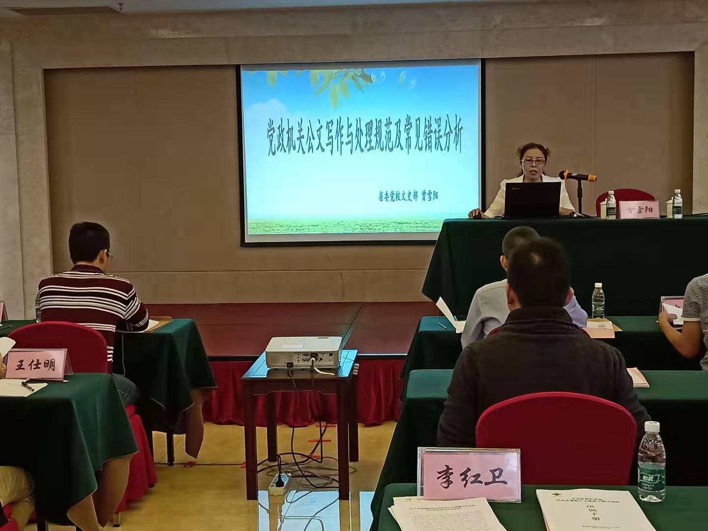 培訓(xùn)班邀請了省委黨委畢普云教授、曾雪陽、王偉、梁科等4位老師進行授課。課程內(nèi)容緊緊圍繞黨的十九大和十九屆二中、三中全會精神,習(xí)近平總書記“4·13”重要講話和中央12號文件及其配套方案,省委七屆七次全會精神以及公文規(guī)范寫作等內(nèi)容開展。