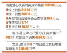 ☉前7月海南扶貧農(nóng)產(chǎn)品銷售額近9000萬元 受益貧困戶約11.92萬戶次 海南日報記者8月8日從省供銷合作社獲悉,據(jù)不完全統(tǒng)計(jì),今年1月-7月,全省扶貧農(nóng)產(chǎn)品銷售金額8995.92萬元,受益貧困戶約11.92萬戶次。 全省消費(fèi)總額9588.58萬元。省直機(jī)關(guān)、企事業(yè)單位及其下屬單位線上線下集體消費(fèi)1475.93萬元、個人消費(fèi)984.55萬元,合計(jì)246 日期:2020.08.10 點(diǎn)擊:244