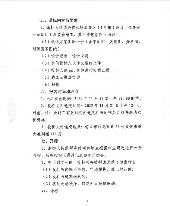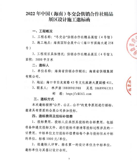 2022年中國(海南)冬交會供銷合作社精品展區(qū)設(shè)計施工邀標函